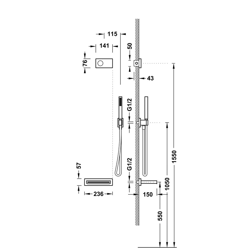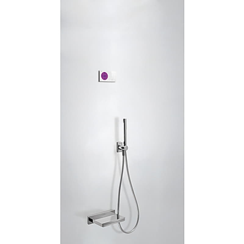 · Control electrónico incluido con juntas antihumedad Schlüter. · Centralita termostática electrónica incluida (2 vías). · Rociadorde ducha empotrado a techo de acero inoxidable: Ø 380 mm. · Soporte para ducha de mano con toma de agua a pared. · Ducha de mano anticalcárea de latón. · Flexo satinado. Referencia: 09286556 https://www.tresgriferia.com/shower-technology-kit-de-grifo-termostatico-electronico-empotrado-de-2-vias-shower-technology-blue-edition-para-ducha-09286555