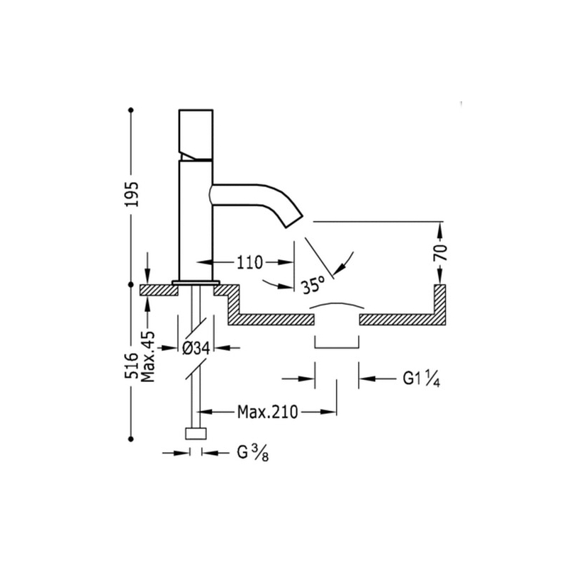 MONOMANDO LAVABO TRES STUDY VOLANTE 195 MM ACERO 26190301AC