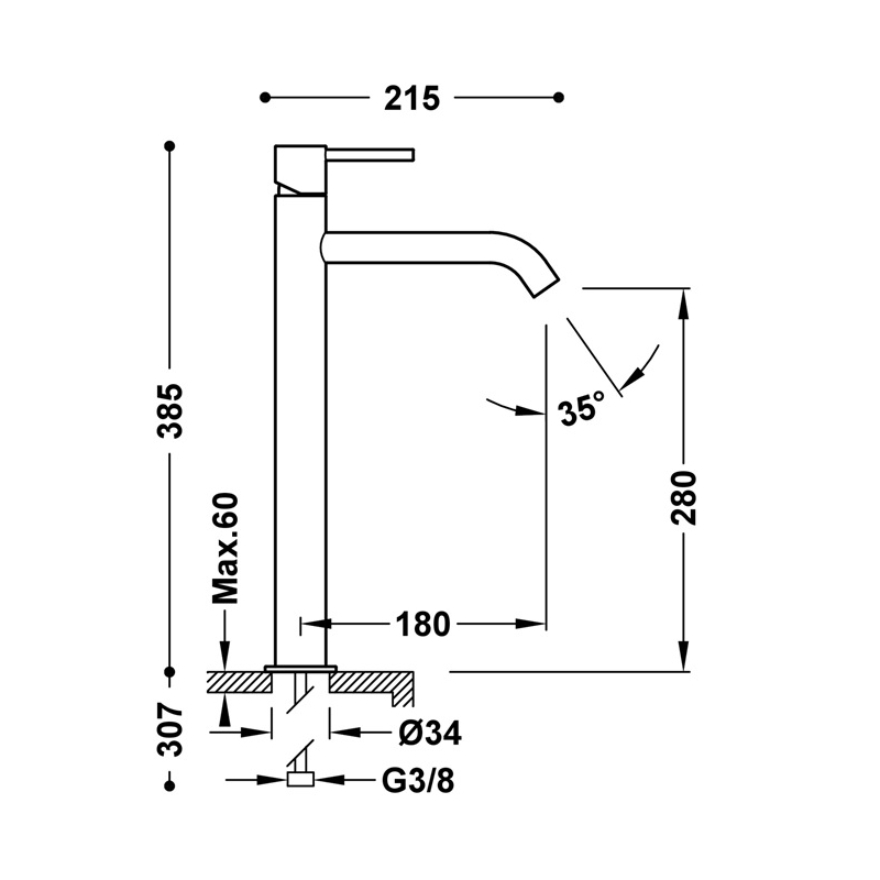 Descripción grifo monomando alto para lavabo tres study