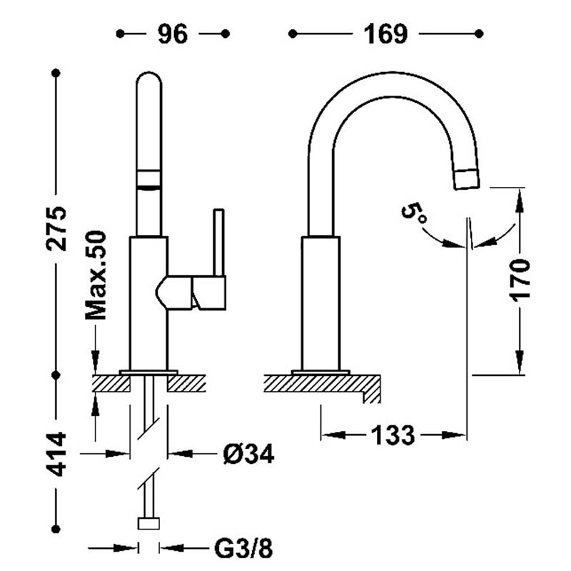 - Latiguillos de alimentación flexibles G3/8. - Cartucho de larga duración: > 200.000 ciclos - Caudal (l/min): 8 - Cold-tres®. Ahorro energético. - El grifo siempre se abre con agua fría, evitando el encendido innecesario del calentador. - Elemento conexión: FLEXIBLE G3/8" - Material: Latón bajo contenido en plomo - Novedad - Referencia del cartucho (recambio): 9130190 - Resistente a la corrosión: Según EN-248 - Ángulo de giro del caño: 360 · Medidas 275 x 169 mm.