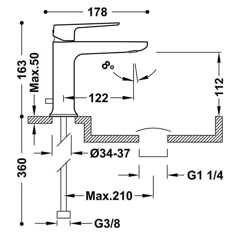 LOFT GRIFO MONOMANDO PARA LAVABO CON DESAGÜE AUTOMÁTICO-22210301DA