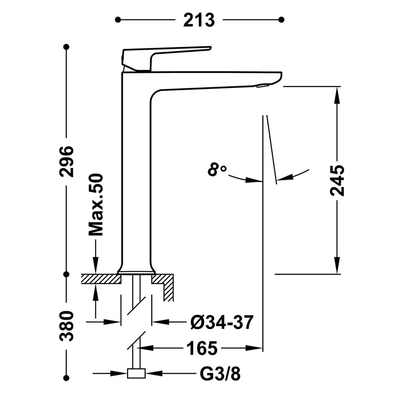 - Latiguillos de alimentación flexibles G3/8.Con tecnología ecoeficiente Cold-tres: La posición central de la maneta siempre es con agua fría. - Acabado Cromo. - Caudal (l/min): 5,7 - Grupo acústico: I - - Material: Latón bajo contenido en plomo - Referencia del cartucho (recambio): 29902808 - Resistente a la corrosión: Según EN-248 https://www.tresgriferia.com/loft-grifo-monomando-xl-para-lavabo-22280401