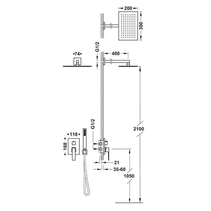· Brazo a pared con rociador de ducha orientable y de acero inoxidable.