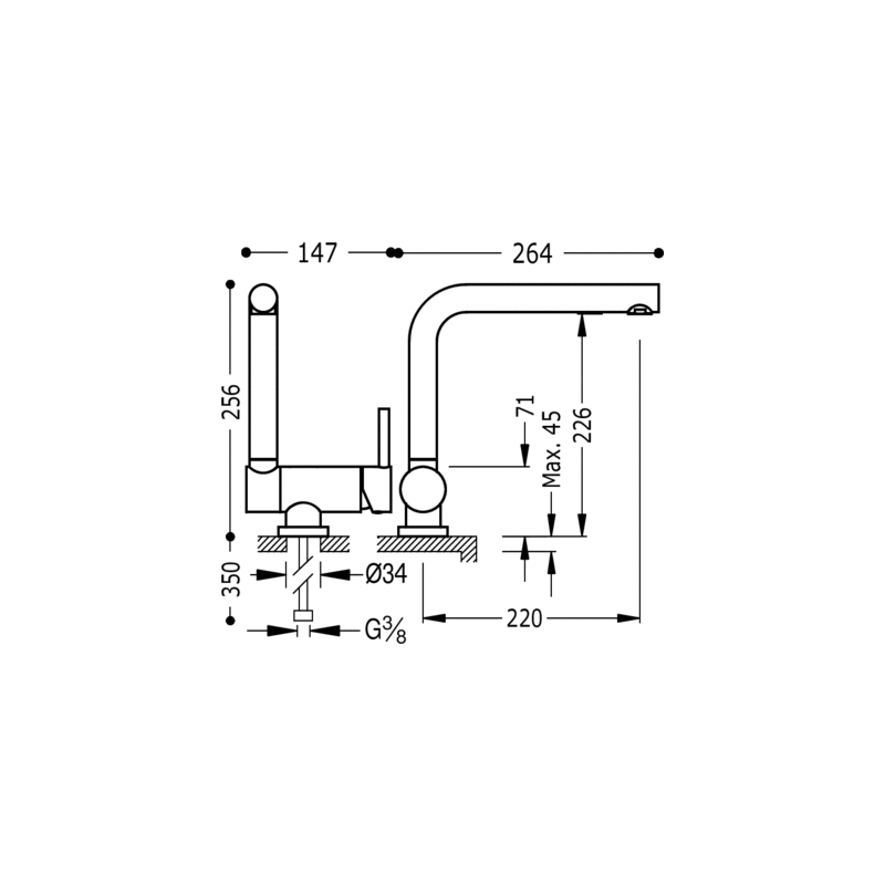 · Referencia 030335AC. · Acabado acero. · Medidas 256 x 264 mm. · Con latiguillos de alimentación flexible G3/8. · Caño abatible para cocina. · Ángulo de giro del caño 360 grados. · Cold-tres. · Ahorro energético. · El grifo siempre se abre con agua fría, evitando el encendido innecesario del calentador. · Tres-duo. · Ahorro de agua. · Dos posiciones de apertura de la maneta. · En posición intermedia se consume la mitad. No disponible- Sustituto M388098