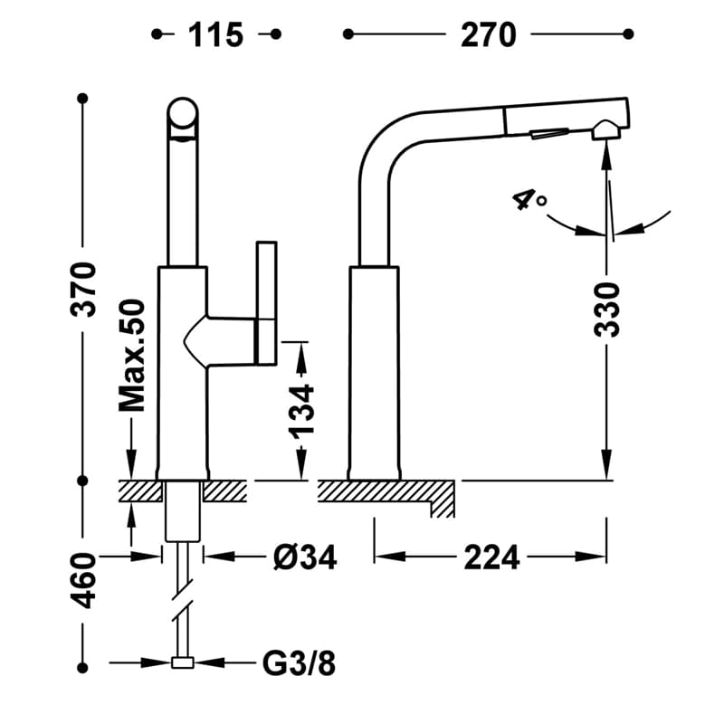 MONOMANDO MAX-TRES FREGADERO VERTICAL EXTRAIBLE 295X225 MM
