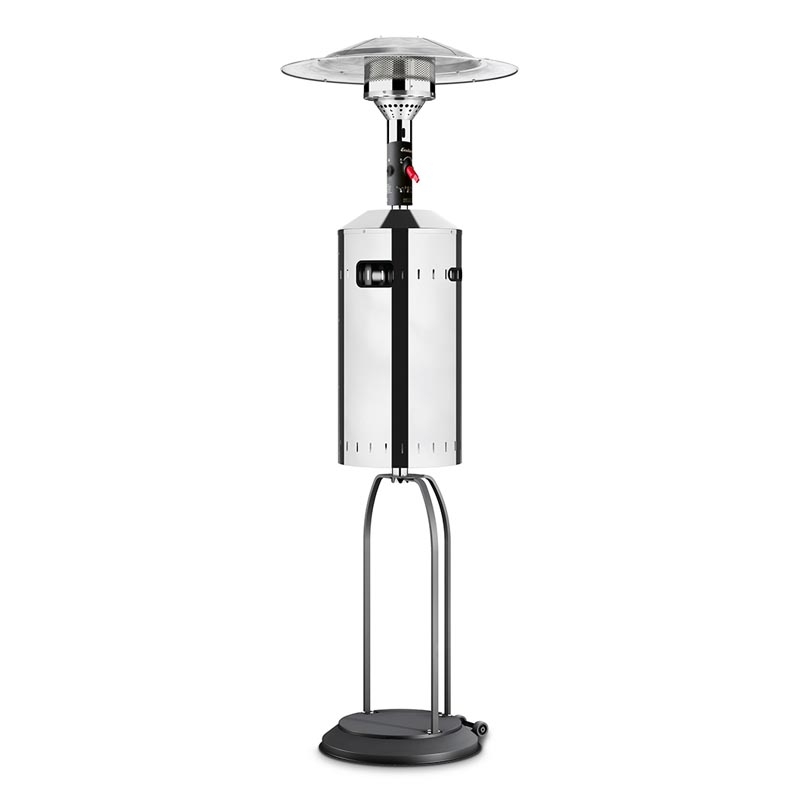 · Potencia 3,5 - 8 kW. · Alimentación butano o propano comercial. · Consumo 450 - 870 gramos por hora. · Reflector de Ø76 cm. · Base de Ø46 cm. · Altura 218 cm. · Peso 14,5 kg. · Material acero inoxidable pulido. · Tecnología de quemador ECO-PLUS. · Consumo 30 por ciento menos de gas y de CO2.