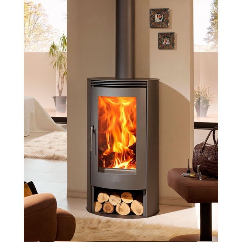 · Cumple con la normativa europea EcoDesign 2022. · Toma de aire exterior. · Revestida en vermiculita con doble cuerpo de acero 5+2,5 mm. · Dispone de leñero. · Se pueden meter troncos de hasta 50 cm. · Doble combustión. · Parrilla de hierro fundido.