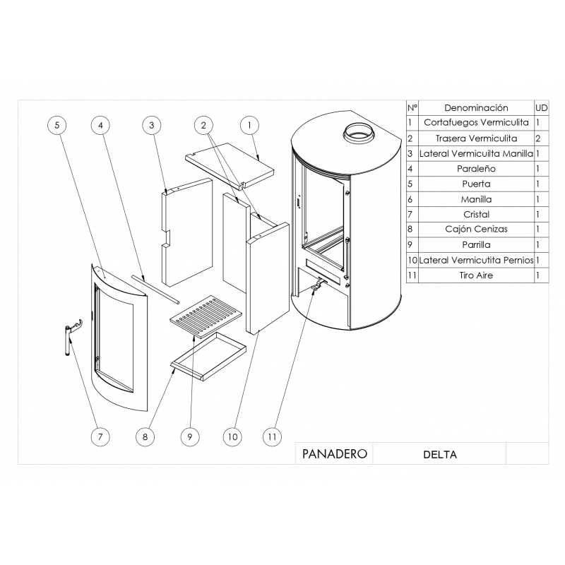 Características técnicas estufa de leña Panadero Delta EcoDesign: