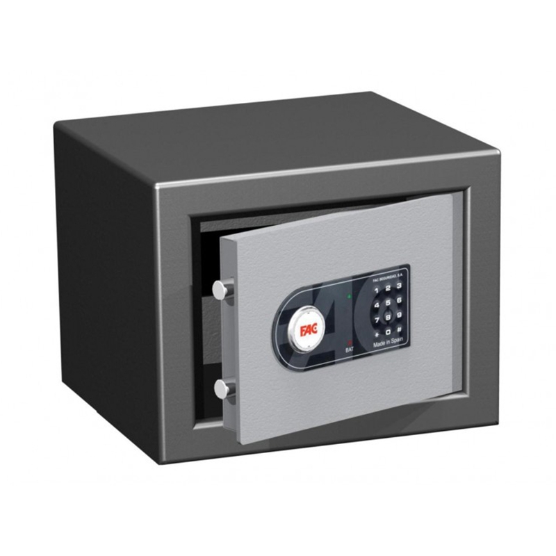 CARACTERISTICAS · Provista de serie con cuatro orificios en la base y tres en el fondo para su fijación al suelo y pared respectivamente. · Apertura con llave. · Apertura electrónica. · Apertura de emergencia S.O.S. · Cierre con 2 bulones. · Puerta de chapa de acero de 6 mm. · Cuerpo de chapa de acero de 2 mm.