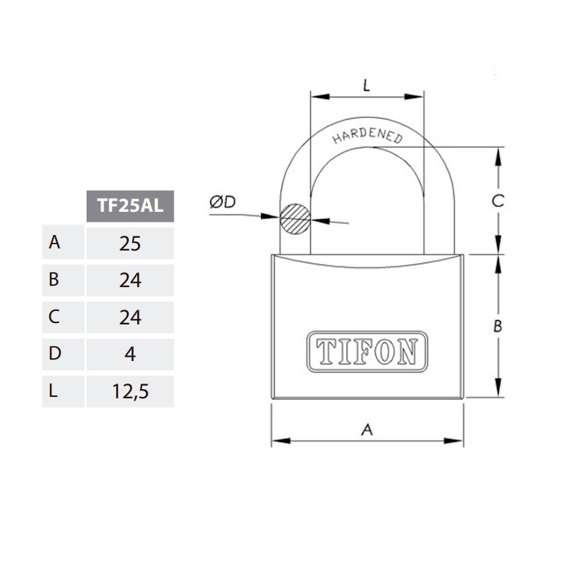 · Medida arco largo 25 mm. · Material cuerpo latón extruído. · Material arco acero endurecido. · Sistema de doble enganche. · Pasadores de bloqueo con tratamiento antioxidación. · Muelles de acero inoxidable AISI 304. · Se suministran con 2 llaves.