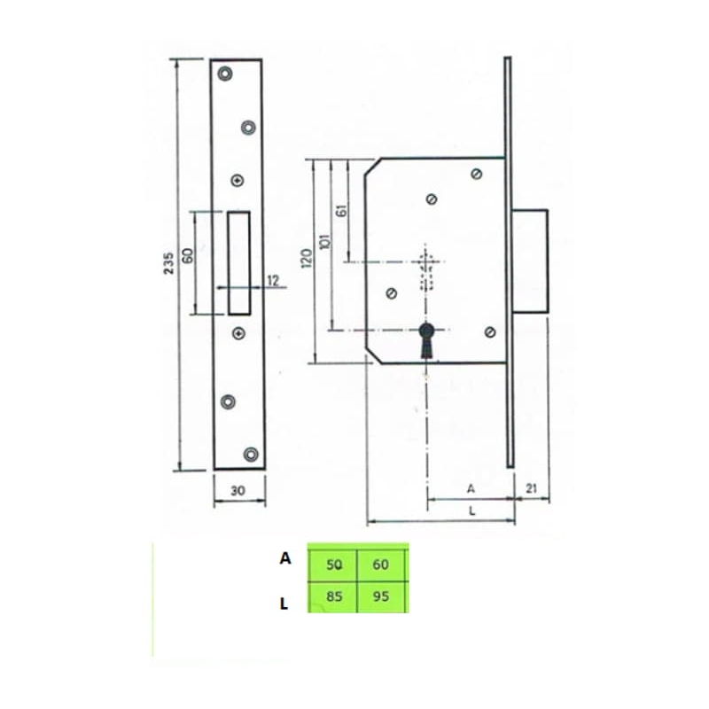 ·Cerradura para puerta de llave sola. ·Aguja: 50 mm. .Pestillo solo, rectangular en acero cromado. .Dos vueltas. .Seis gorjas de acero, con muelles irrompibles. .Tres llaves de latón cromado, tipo hembra. .Acabado Latón.