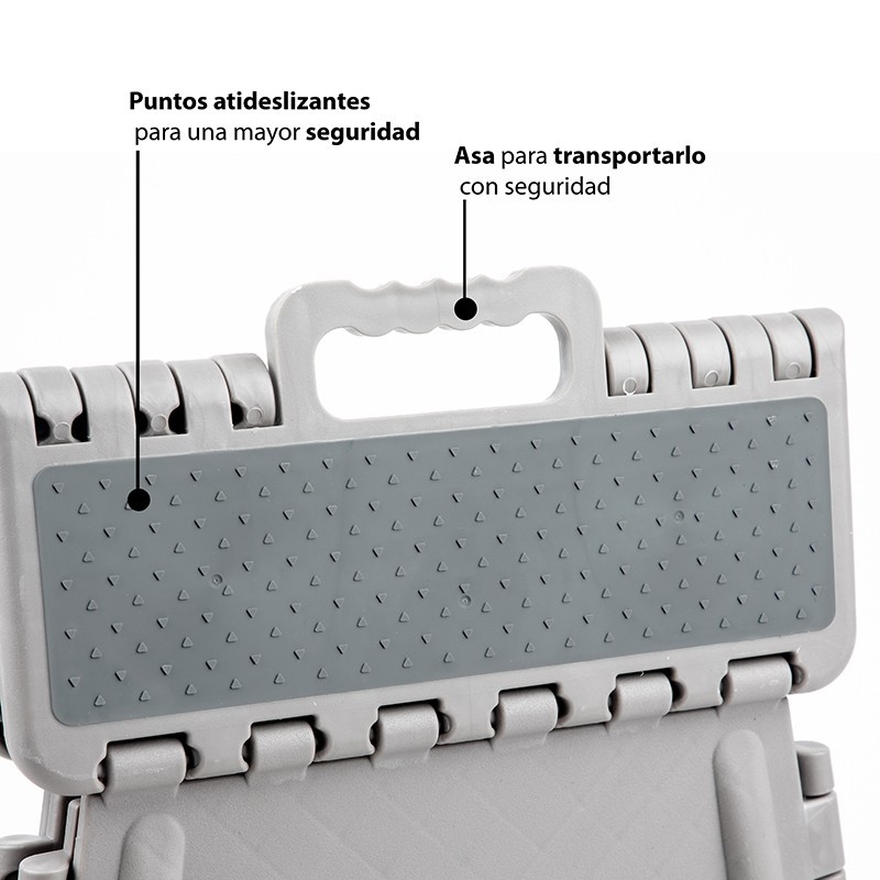 TABURETE PLEGABLE VIGAR COMPACT CON PELDAÑO 40CM GRISCaracterísticas taburete plegable vigar · Material polipropileno. · Taburete plegable de...