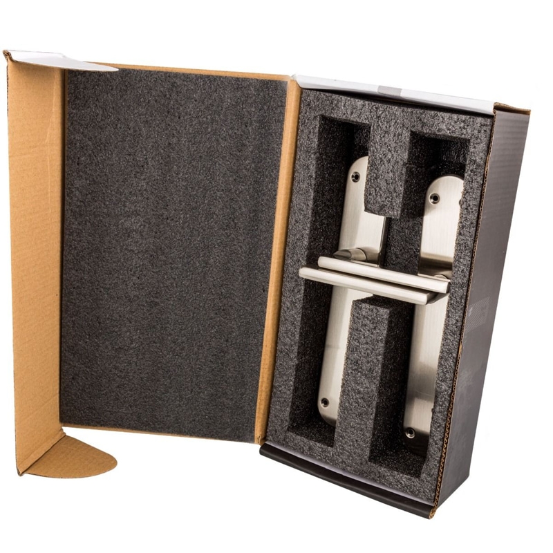 · Juego de manillas fabricadas en aluminio. · Placa de hierro con acabado níquel satín. · Medidas 255x48x113 mm. · Indicada para puertas de interior. · Aporta un toque de estilo a tu hogar. · Incluye cuadradillo de 8 mm y tornillos. · Presentación en caja con espuma interior.