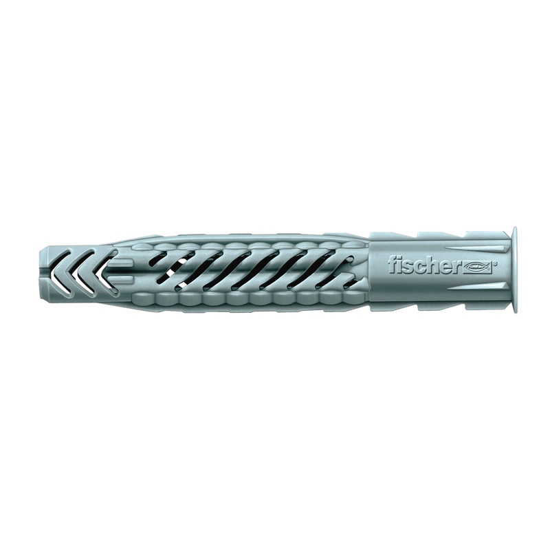 El taco universal UX de fischer es una fijación de plástico de Nylon de gran calidad. El taco universal de fischer se expande en los materiales macizos y se anuda en los materiales huecos y en las placas para una sujeción máxima. De este modo, el UX de fischer es siempre la elección correcta: incluso en materiales de construcción desconocidos. El borde impide que se hunda durante el montaje.