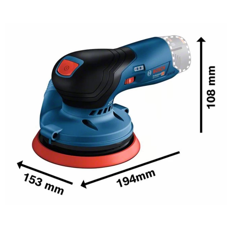 · Diámetro de plato lijador 125 mm. · Velocidad de giro en vacío 6000 - 10000 rpm. · Número de orbitaciones en vacío 12000 - 20000 rpm. · Excentricidad 1,25 mm. · Fijación del material abrasivo cierre por contacto. · Diámetro de circuito oscilante 2,5 mm. · Tensión de la batería 12V. · Peso sin batería 1 kg. · Dimensiones de la herramienta 10,8 x 19,4 x 15,3 cm. · Nivel de presión acústica 66 dBA. · Nivel de presión acústica 77 dBA. · Tolerancia k 3 dB.