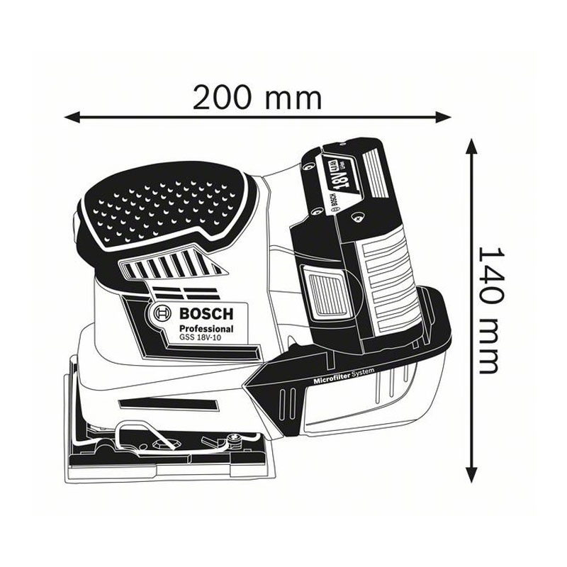 · Tensión de la batería 18V. · Número de oscilaciones en vacío 22000 opm. · Diámetro de circuito oscilante 1,6 mm. · Dimensiones de la placa lijadora ancho x longitud: 101 x 113 mm. · Superfície de lijado 114 cm2. · Hoja lijadora para sujetar ancho x longitud: 115 x 140 mm. · Hoja de lija con cierre por contacto ancho x longitud: 115 x 107 mm. · Placa lijadora delta con cierre por contacto largo x ancho: 150 x 100 mm. · Placa lijadora con cierre por contacto largo x ancho: 130 x 80 mm. · Placa lijadora con cierre por contacto y abrazadera largo x ancho: 101 x 113 mm. · Peso con batería incluida 1,7 kg. · Dimensiones de la herramienta 14,2 x 19,8 x 11,3 cm.