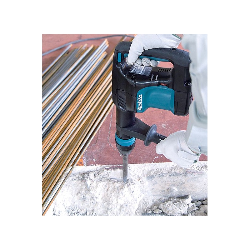 · Modelo: Makita HM0870C. · Potencia 1.100 W · Golpes por minuto 1.100 - 2.650 gpm · Inserción SDS-MAX · Peso: 5,1 Kg · Longitud del cable 4,0 m · Dimensiones. LxAnxAl 466 x 116 x 230 mm · Arranque suave · Electrónica constante · Velocidad variable, dial · Posiciones prefijadas de cincelado 12 posiciones · Emisión de vibración11,50 m/seg² · Incertidumbre, K de vibración 1,50 m/seg² · Presión sonora 87,00 dB, A · Potencia sonora 98,00 dB, A · Incertidumbre, K sonora 3,00 dB, A · Inserción SDS-MAX de una sola acción con 12 posiciones diferentes de cincelado. · Escobillas más duraderas que el modelo HM0860C, aumentando así el tiempo de la realización del mantenimiento. · Elastómero en la empuñadura, haciendo así más cómoda la utilización del martillo para el operario. · No baja de revoluciones en carga, arranque suave para mayor control y luces indicadoras de escobillas y averías. · Nuevo porta-escobillas con muelle en espiral que hace la misma presión tanto al comienzo como al final de la vida de la escobilla. Evita así que introduzca polvo entre la escobilla y el inducido. · Marca: Makita.