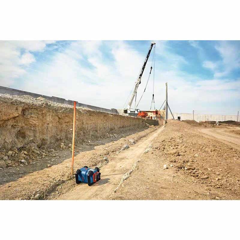 Perfecto para tareas pesadas en entornos complejos, el robusto GRL 600 CHV Professional soporta hasta las condiciones más difíciles. Su diseño robusto ofrece una protección frente a impactos y cuenta con un grado de protección IP68 frente al polvo y al agua, incluido el compartimento de la batería, para un trabajo muy flexible en condiciones climáticas adversas. Ofrece una cómoda conectividad, lo que facilita la concentración y ahorra tiempo. El manejo de la herramienta es intuitivo gracias a su pantalla y al acceso a la aplicación Levelling Remote, que muestra todas las funciones, incluida la configuración de doble pendiente, para ahorrar un tiempo muy valioso. Este láser de alta precisión tiene una gran autonomía, con el sistema de batería de 18 V y pilas alcalinas incluidas para un trabajo continuo. El GRL 600 CHV también cuenta con un receptor de alta calidad con un área de recepción de 125 mm, una pantalla de doble cara y una función de desplazamiento en milímetros. La calibración de la herramienta es rápida y sencilla: siga las instrucciones paso a paso en su intuitiva aplicación para ahorrar tiempo y recursos, y garantizar un resultado preciso en cada trabajo. Utilice el práctico modo de máscara disponible en la aplicación para evitar los reflejos y las interferencias con otros dispositivos en el lugar de trabajo. Incluye receptor de láser LR 60 Professional, soporte para receptor RB 60 Professional, mando a distancia RC 6 Professional, 1 batería ProCORE18V 4Ah, cargador rápido GAL 18V-40 Professional, adaptador de batería BA 1 Professional, soporte mural WM 6 Professional, 4 pilas de 1,5 V LR20 D, 4 pilas de 1,5 V LR6 AA, placa reflectora de medida del láser, gafas para visión láser rojo, maletín de transporte.