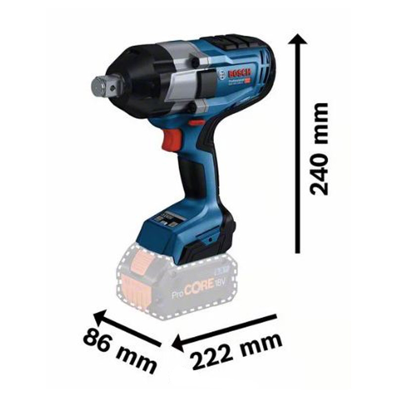 · Potencia 18 V. · Motor Brushless. · Par de giro máximo 1050 Nm. · Velocidad de giro en vacío 0 a 1750 rpm. · Velocidad de giro en vacío 0 a 800, 1200 y 1750. · Niveles de par de giro 3. · Número de impactos máximol 0 a 2600 ipm. · Portaherramientas 3/4" cuadrado exterior. · Par de arranque 1700 Nm. · Diámetro de tornillo M 10 y M 24. · Peso sin batería 2,9 kg. · Dimensiones (anchura x longitud x altura) 8,6 x 22,2 x 24. · Embalaje caja de cartón. · Fijación más segura de vaso con pasador. · Clip para cinturón. · Luz led y display de usuario. · Indicador del estado de la batería. · Un enganche para escaleras. · Tecnología Biturbo