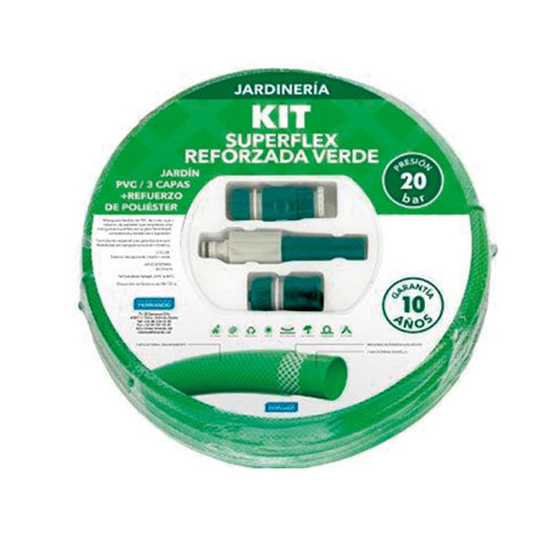 · Medida longitud 25 metros. · Medida diámetro Ø19 milímetros. · Material policloruro de vinilo. · Color verde. · Con triple capa. · Refuerzo poliéster. · Temperatura de trabajo -20 a 60 grados. · Sin accesorios.