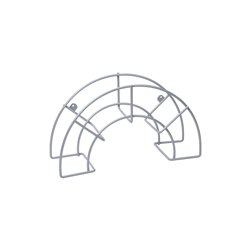 CARACTERISTICAS · Colgador mural reforzado. · Acero pintado con resina de poliester al horno. · Color: Plata. · Capacidad que soporta: 25 metros de manguera 1/2'. · Dimensiones, anchura x profundidad x altura, cm: 35,5 x 12,5 x 18,5.