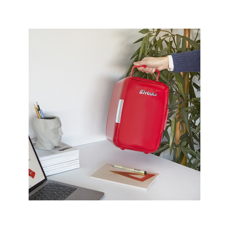 Características:>/h3> · Nevera portátil con capacidad hasta 8 latas 33cl medida estándar o 4 botellas de 0,5 litros. · Mini nevera con bandeja interior extraible y soporte interior de puerta extraible para lograr más capacidad. · Fácil de transportar. · Puede conectarse en casa e incluso en el coche. Puede conectarse a un toma eléctrica normal de 220V AC o a una toma de coche de 12V DC · ENFRIA Y CALIENTA. La nevera puede enfriar hasta 15 grados menos que la temperatura ambiente en 180 minutos. Además calienta hasta 50 grados. · Dispone de un ventilador que refrigera el motor y genera un suave rumor sonoro. · Medidas 28x20,5x23,8 cm · Material plástico ABS y aluminio.