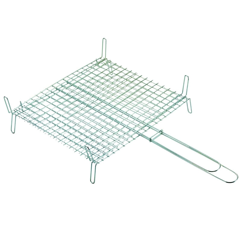 · Material acero cincado. · Superficie de cocción 40 x 45 cm. · Patas dobles de 7,5 cm de alto, con una altura total de 15,5 cm. · Cuadriculada para evitar que los trozos pequeños se caigan al fuego · Puede usarse dentro de una barbacoa, en el suelo o en una chimenea. · Resistente a las llamas y altas temperaturas.