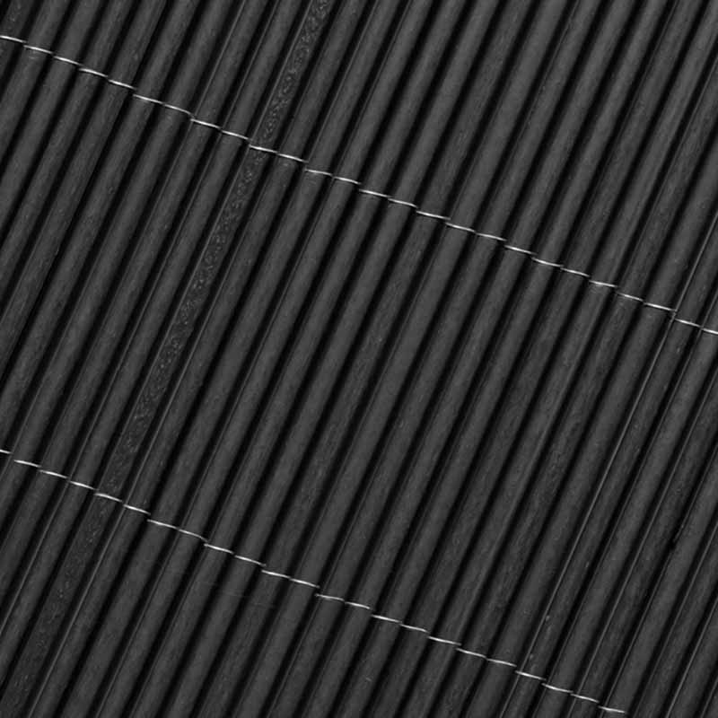 · Medida 1 x 3 metros. · Material LOP. · Composición materiales orgánicos reciclados y reciclables. · Color antracita. · Grosor de las varillas diámetro de 7,5 mm aproximadamente. · Unión de las varillas tejido de torsion simple con alambre de acero galvanizado de 0,7 mm de sección. · Distancia entre cosidos 10 cm. · Tratamiento anti-UV. · Ignifugo. · Fácil montaje. · Ocultación jardines, terrazas y hoteles.