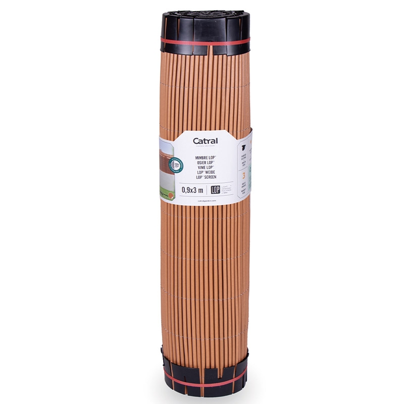 · Medida 1,5 x 3 metros. · Material LOP. · Composición materiales orgánicos reciclados y reciclables. · Color mimbre. · Grosor de las varillas diámetro de 7,5 mm aproximadamente. · Unión de las varillas tejido de torsion simple con alambre de acero galvanizado de 0,7 mm de sección. · Distancia entre cosidos 10 cm. · Tratamiento anti-UV. · Ignifugo. · Fácil montaje. · Ocultación jardines, terrazas y hoteles.