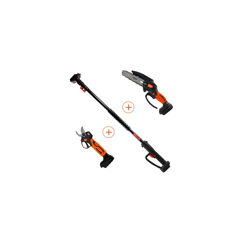· Kit de poda compuesto por tijera capacidad de corte 28mm(af28). · motosierra con espada de 150mm (af150). · pértiga compatible con tijera y motosierra. · 2 bater¡as 21v-2ah. · incluye herramienta y cadena de recambio para motosierra.