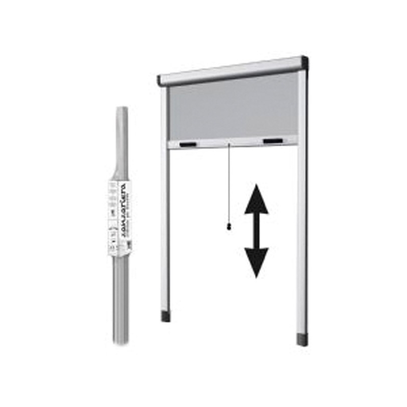 Kit de mosquitera enrollable vertical de 160 x 150. Perfiles en aluminio y tela mosquitera de fibra de vidrio. Medida ancho 160 cm y medida alto 150 cm. Sistema con muelle que permite la corrección de posibles errores de medida. Fijación a la pared muy simplificada con tornillos. Se suministra siempre con freno que recoge la mosquitera lentamente, evitando golpes. Con marca CE. Código QR disponible. FABRICADO EN ITALIA. PARA VER VIDEO INSTALACION: https://youtu.be/BN46d5OhBp4.