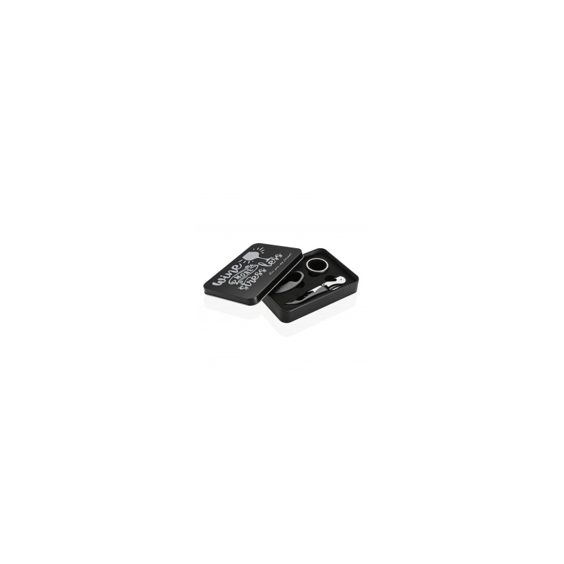SET VINO 3 ACCESORIOS DRINK WINE Caracteristicas: · Largo: 15.5 cm. · Ancho: 11 cm. · Alto: 2.7 cm. · Material: Acero