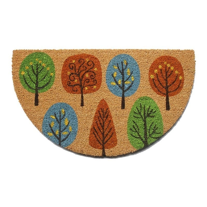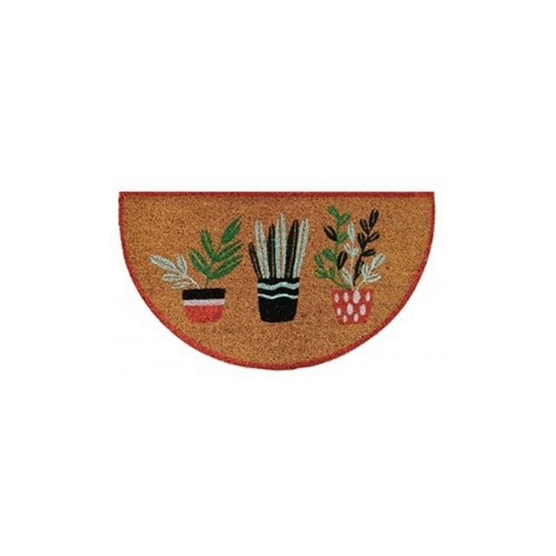 Felpudo de coco natural con base de PVC en forma de media luna.