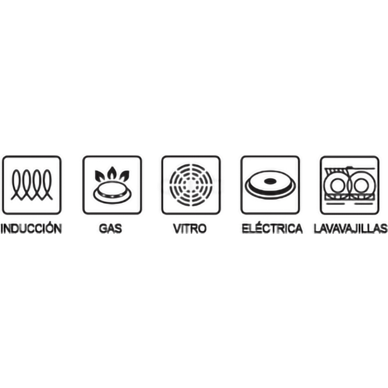 ? Fabricado en acero inoxidable 18/10 muy higi?nico y resistente al desgaste. ? El t?rmino acero inoxidable 18/10 se refiere a las proporciones de cromo y n?quel de la aleaci?n, siendo en este caso 18% y 10% respectivamente. Es una de las mejores aleaciones del mercado, con gran resistencia, durabilidad, conservaci?n del brillo y resistencia a la corrosi?n. ? Triple fondo full induction compatible con todas las fuentes de calor incluida la inducci?n. ? Apto para lavavajillas. ? Mango fabricado en acero inoxidable.