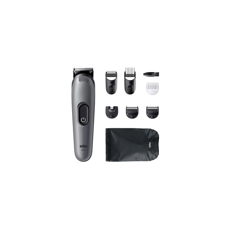 ? Afeitadora multifunci?nBraun 8 en uno Series 3 AIO3540. ? Recorta la barba y el pelo con la recortadora todo en uno AIO3540 ? Kit de afeitado 8 en 1 para barba, pelo, perfilado y mucho m?s. ? Para barba y pelo ? Recortadora todo en 1 que ayuda al afeitado: su kit de styling con accesorios 8 en 1 te permite recortar tu barba y tu pelo sin esfuerzo. ? Tu estilo con comodidad, precisi?n y eficiencia ? Su l?mina ultraafilada es eficiente en cada pasada, incluso en las zonas de dif?cil acceso, para un acabado incre?ble y un afeitado c?modo. ? Recorta f?cilmente cualquier longitud ? Mantente en completo control gracias a sus 14 ajustes de longitud: consigue resultados incre?bles con los peines fijos de 1 y 2 mm y 2 peines deslizantes (3-21 mm) ? Dise?ada para durar ? Esta recortadora todo en uno para hombres incluye una bater?a con hasta 50 minutos de autonom?a inal?mbrica. ? Incluye cabezales y peines lavables y un cepillo de limpieza y funda para el ba?o, para una limpieza r?pida