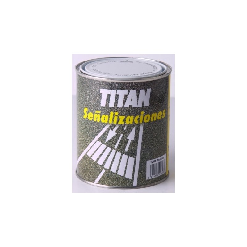 PINTURA SUELO SEÑALIZACION 750 ML TITAN AMARILLO· ESMALTE SEÑALIZACION Amarillo 750ml. Pintura semi-mate a base de resinas acrílicas al...